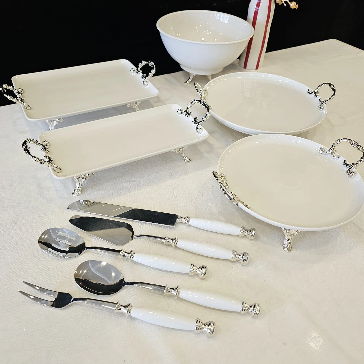 GÜMÜŞ DETAYLI PORSELEN SAPLI 8 PARÇA SERVİS SETİ