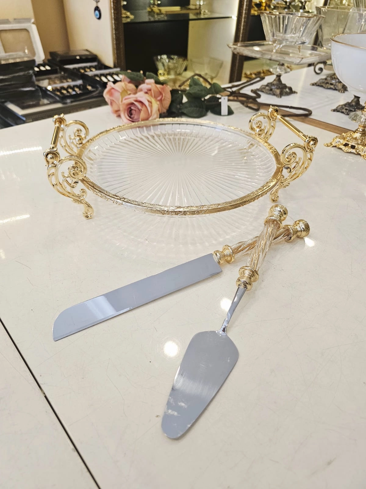 2 PARÇA KRİSTAL SAPLI PASTA SERVİS SETİ GOLD