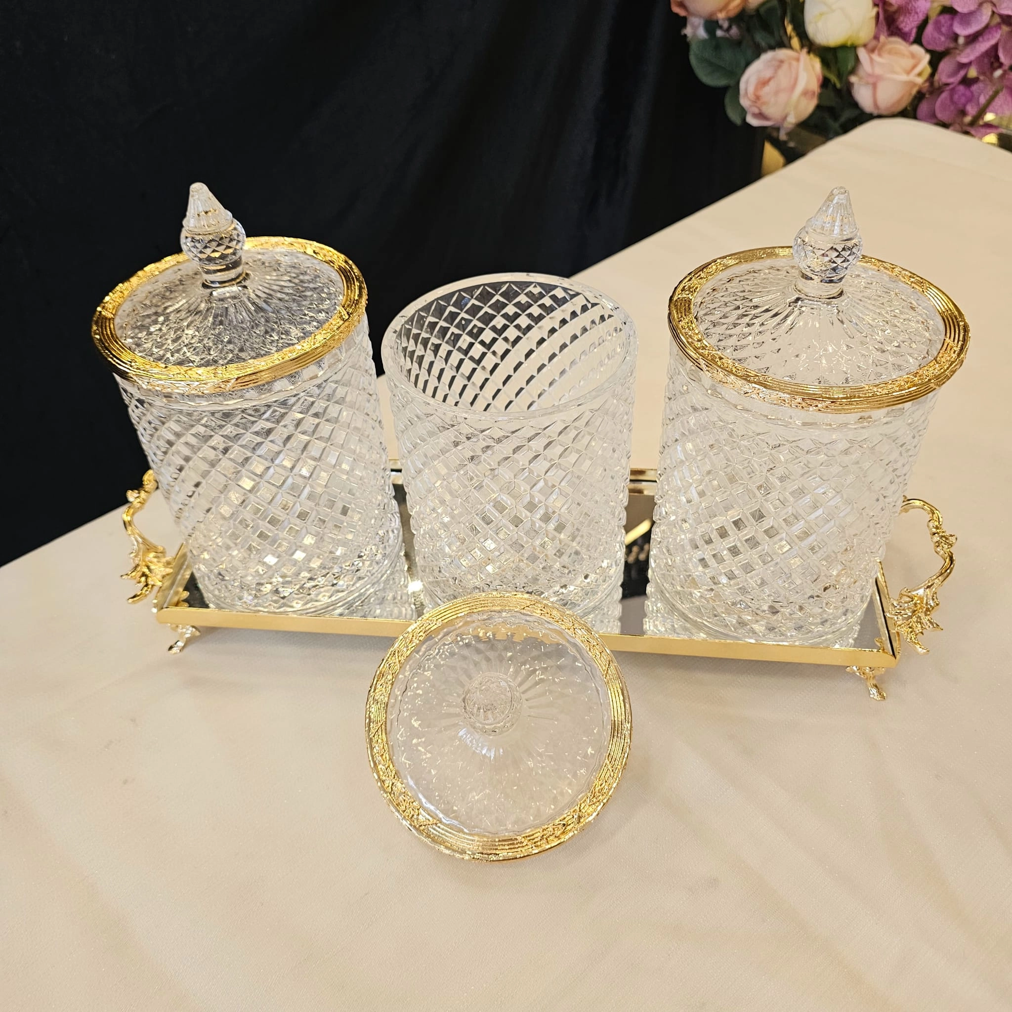 4 PARCA GALA MİNELİ CAM SUNUM SETİ YALDIZ DETAYLI